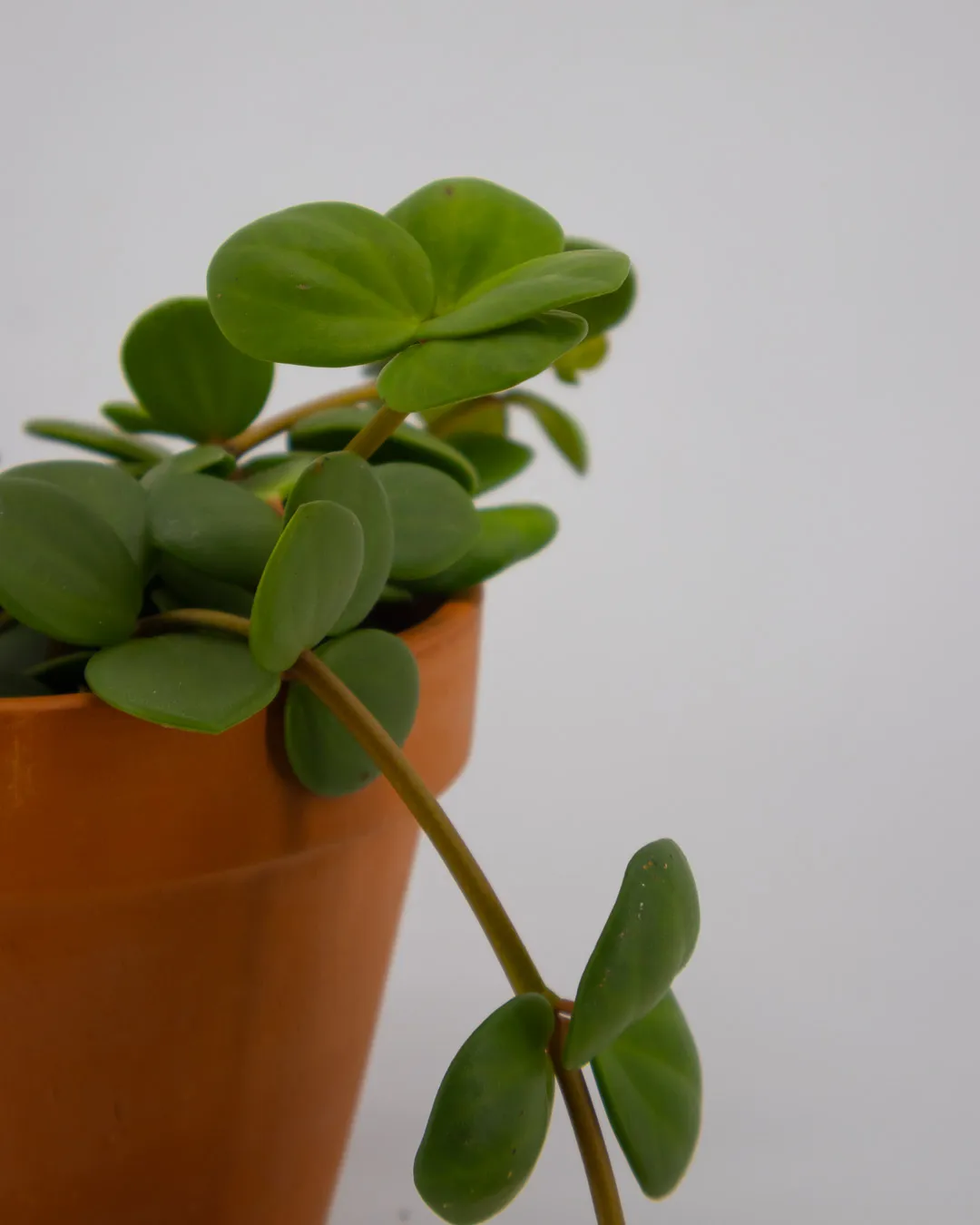 Cerchi una pianta che unisca eleganza e facilità di cura? La Peperomia ‘Hope’ è la scelta perfetta. Con le sue foglie tonde e carnose di un verde brillante, disposte in gruppi di tre o quattro lungo steli sottili, questa pianta crea un effetto cascata delicato e armonioso.