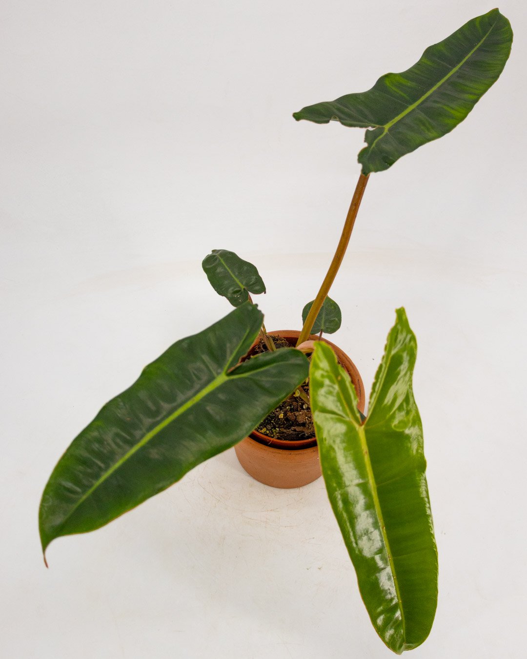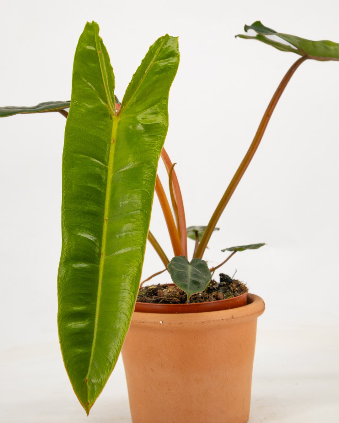 Il philodendron billietiae è una delle varietà più amate e spettacolari al mondo. Ciò che lo rende immediatamente riconoscibile sono i suoi lunghi piccioli (i gambi delle foglie) di un arancione intenso e brillante, che creano un contrasto mozzafiato con il verde scuro e profondo delle sue foglie a forma di freccia.