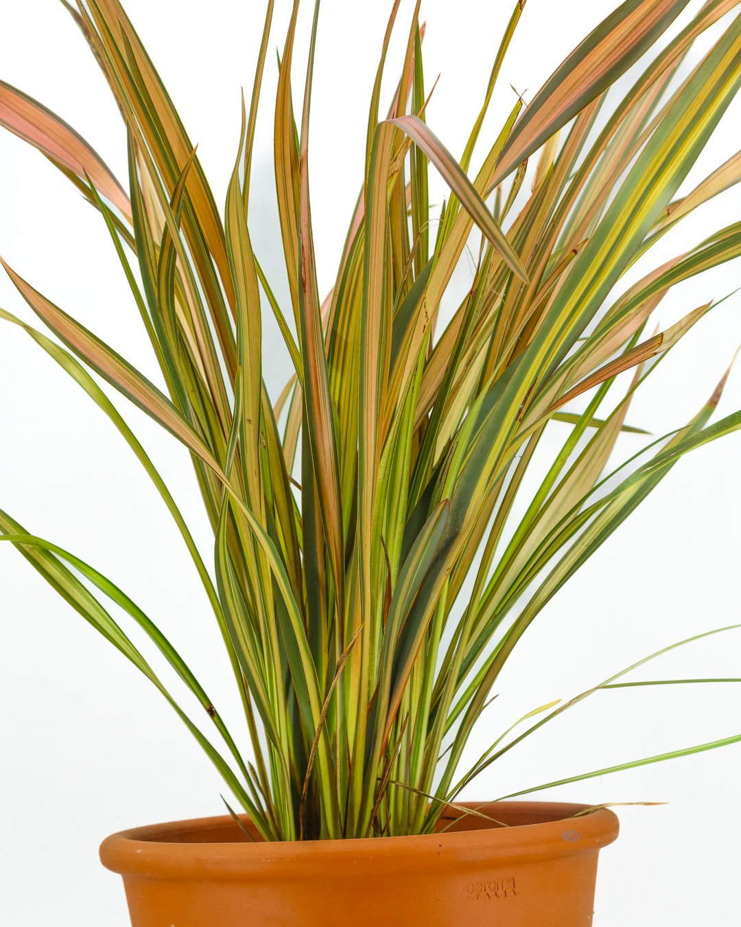 Il phormium ‘Pink Flamingo’ è un arbusto sempreverde unico nel suo genere, caratterizzato da lunghe foglie a forma di spada che crescono a ventaglio direttamente dalla base. La sua colorazione è uno spettacolo: una base verde bronzo e oliva bordata da intense striature rosa fenicottero e pesca.